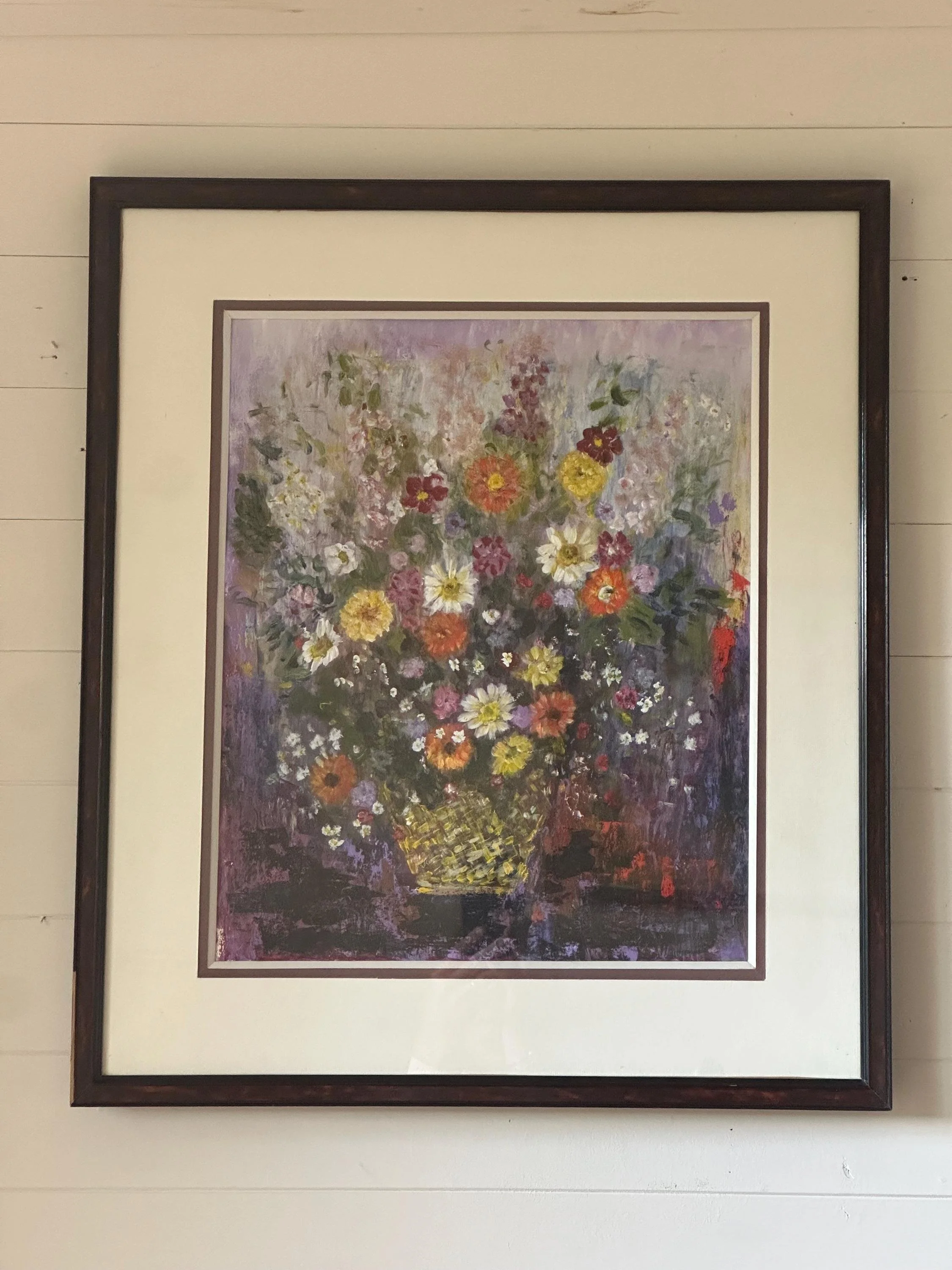 Image 1 of 8 Image 2 of 8 Image 3 of 8 Image 4 of 8 Image 5 of 8 Image 6 of 8 Image 7 of 8 Image 8 of 8 Vintage French Floral Painting on Canvas £125.00 A beautiful large French vintage framed painting of an explosion of flowers, full of rich colours that sing happiness.Width 53.5cmHeight 61.5cm Add To Cart Added! A beautiful large French vintage framed painting of an explosion of flowers, full of rich colours that sing happiness.Width 53.5cmHeight 61.5cm Reviews Reviewer Name Review Date Star Rating Description Posted on Etsy Product Show More